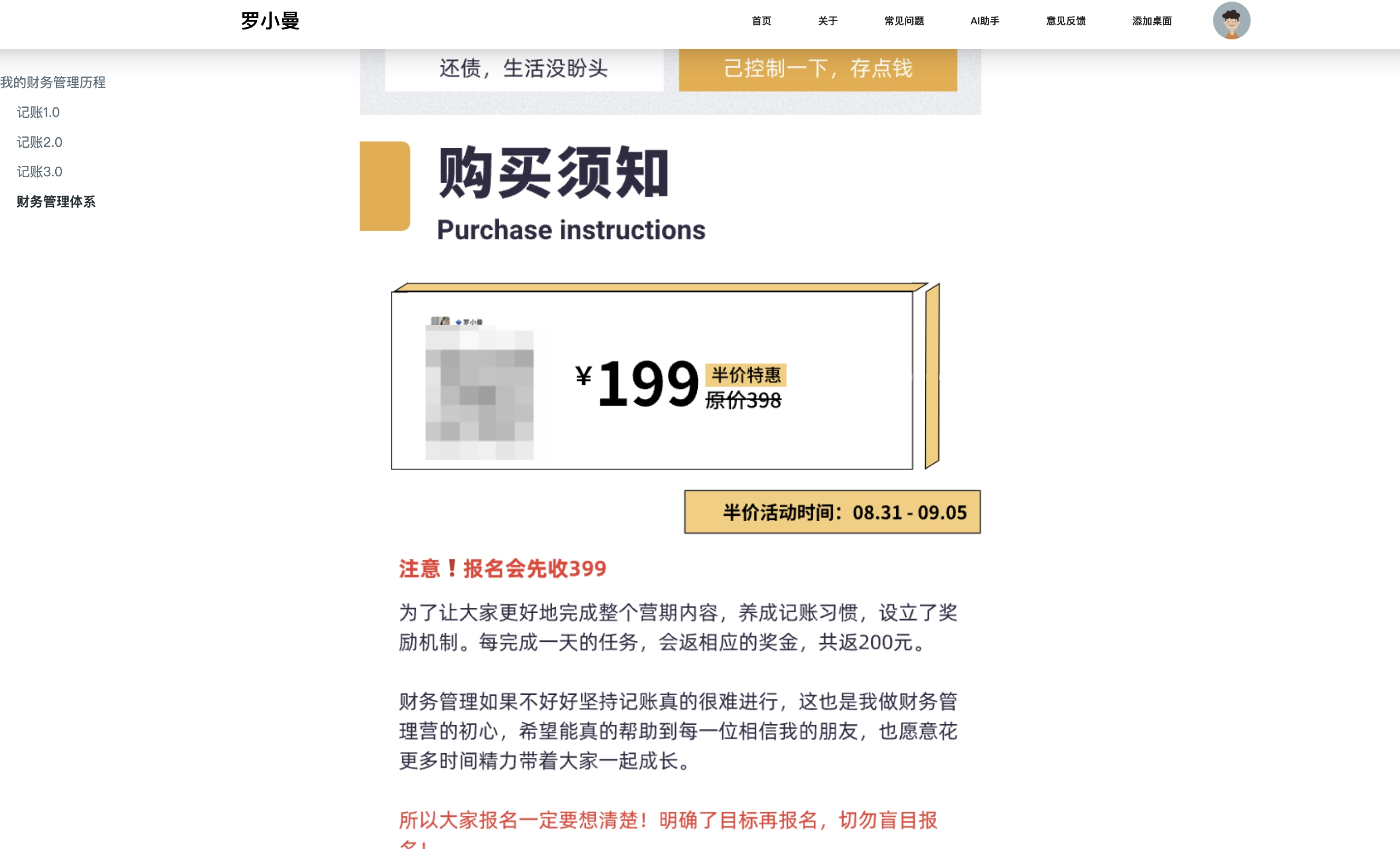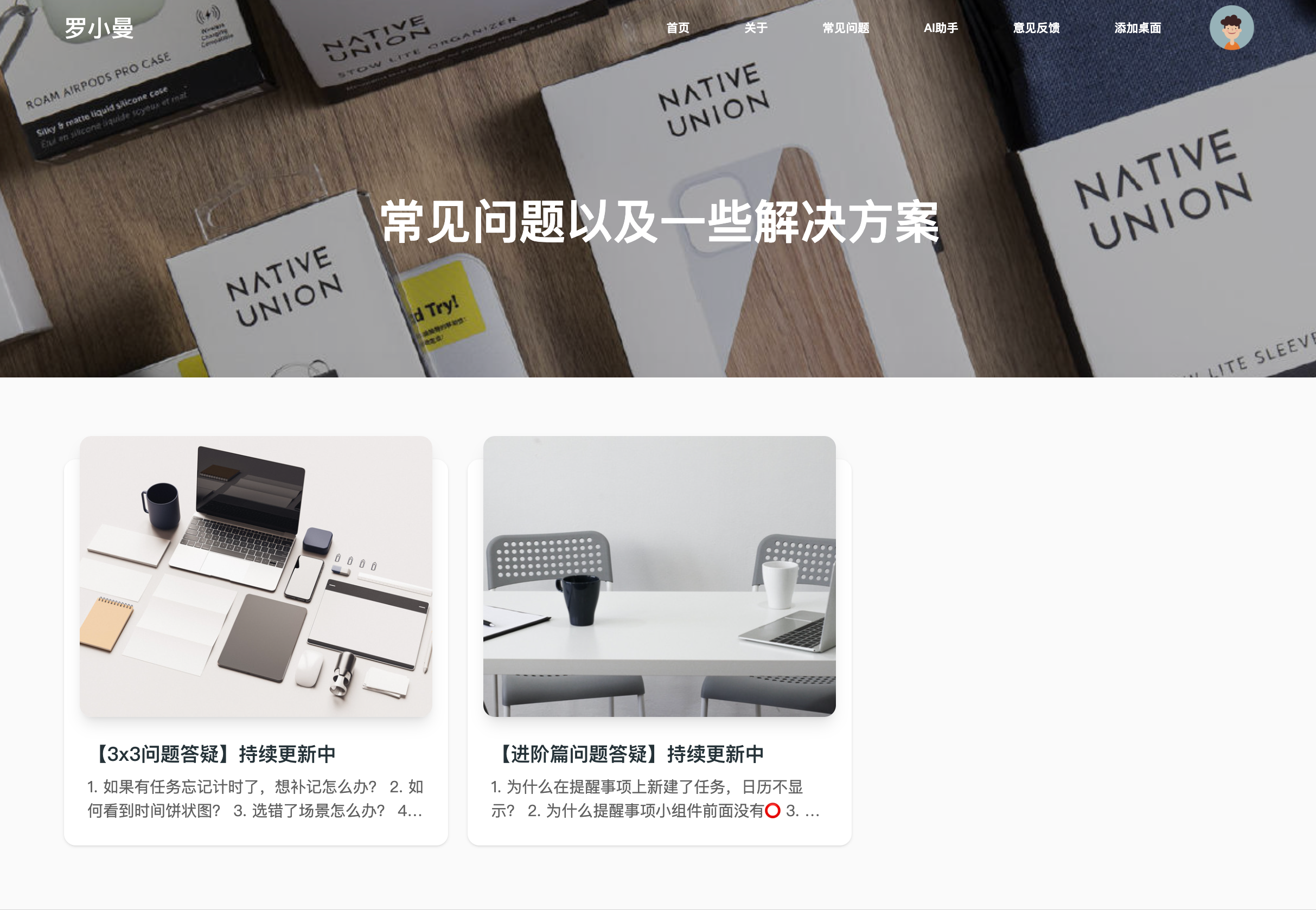 罗小曼的教程内容其实很基础,但她通过独立网站、FAQ 模块、AI 助手等设计,把"几篇文章"包装成了"一套系统"。
