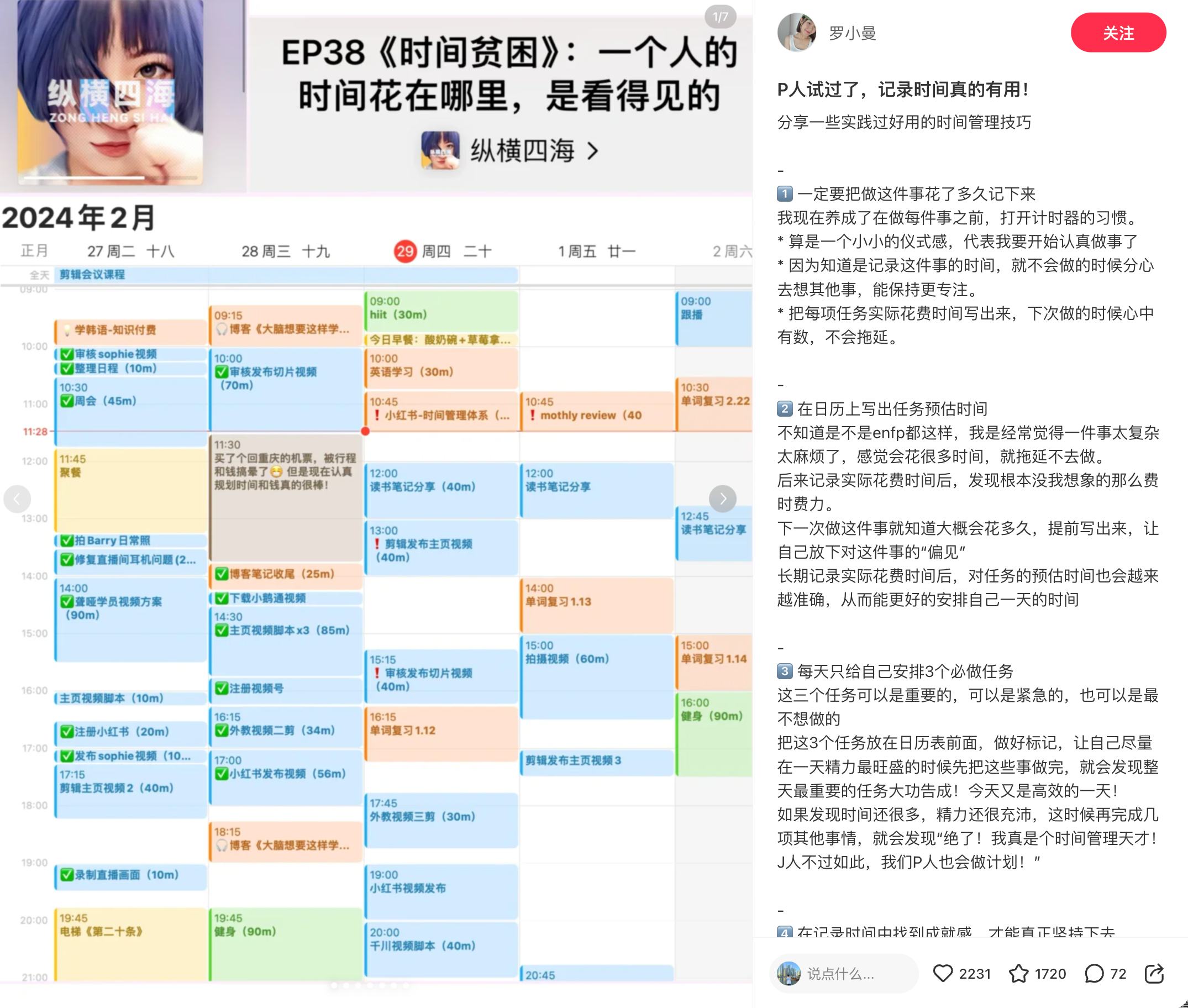以罗小曼为例,她完全可以围绕"时间管理 + 效率提升"的标签,开发: