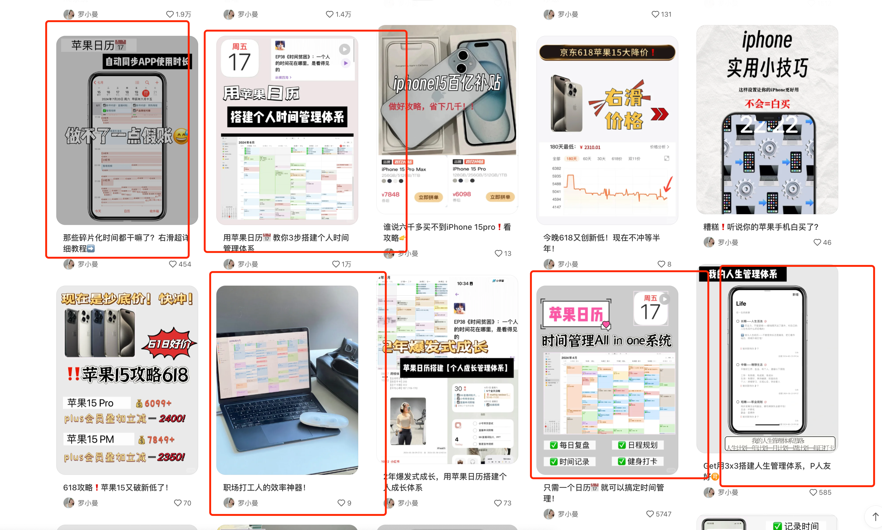 她的早期内容围绕着 iPhone 的特色功能、iPad 的学习型应用展开。这些笔记看似简单,却精准地切中了小红书的核心用户群:追求效率的年轻上班族、渴望自律的学生党、对数码产品充满好奇的爱好者。