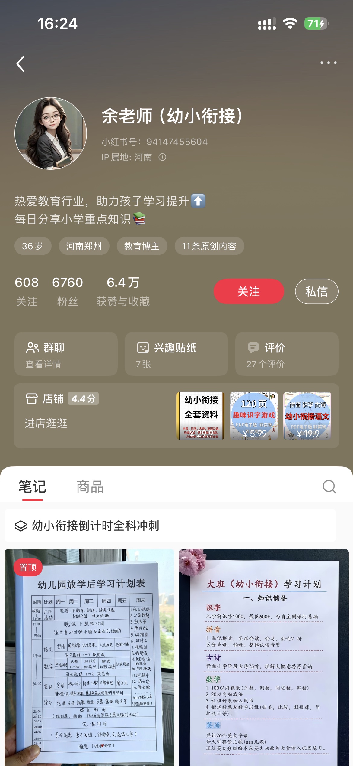 我们来看看小红书上幼小衔接的对标账号,大家也可以自行去搜索,这边我只展示两位低粉但是变现能力比较强的两个账号。