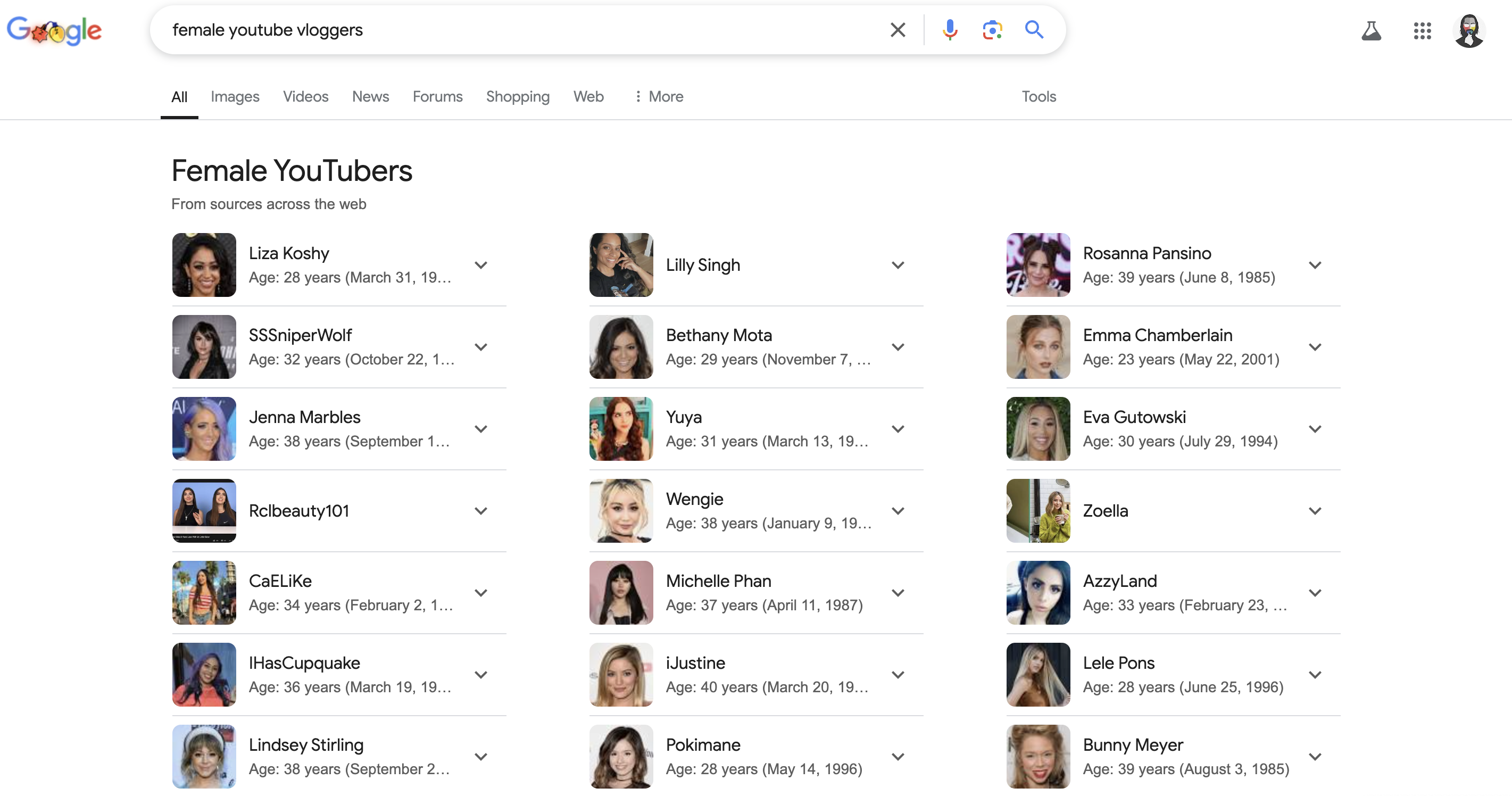 我相信有人会问如何找这样的Youtuber,其实很简单,只要你找到一个并看过,通过Yotubue算法和相关推荐。当然你也可以去搜索「female youtube vloggers」。
