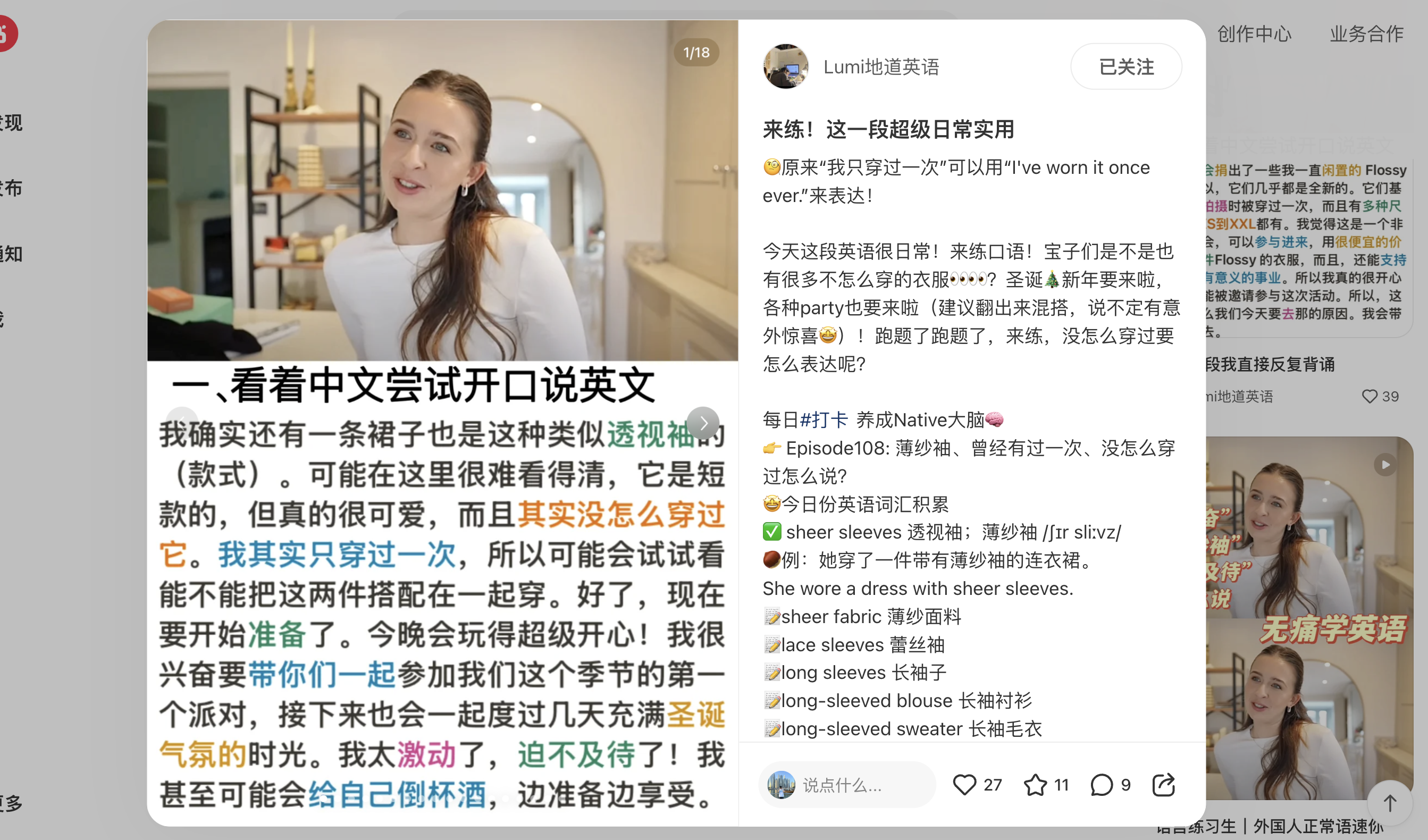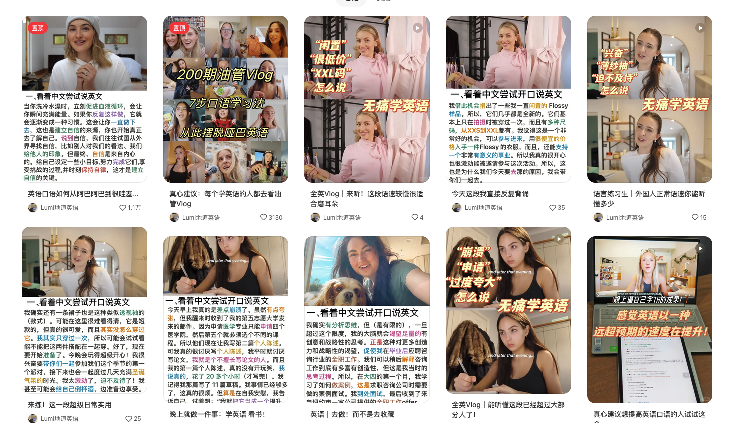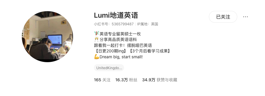 接下来我们就来分析我们本期主要关注的小红书博主:Lumi地道英语。