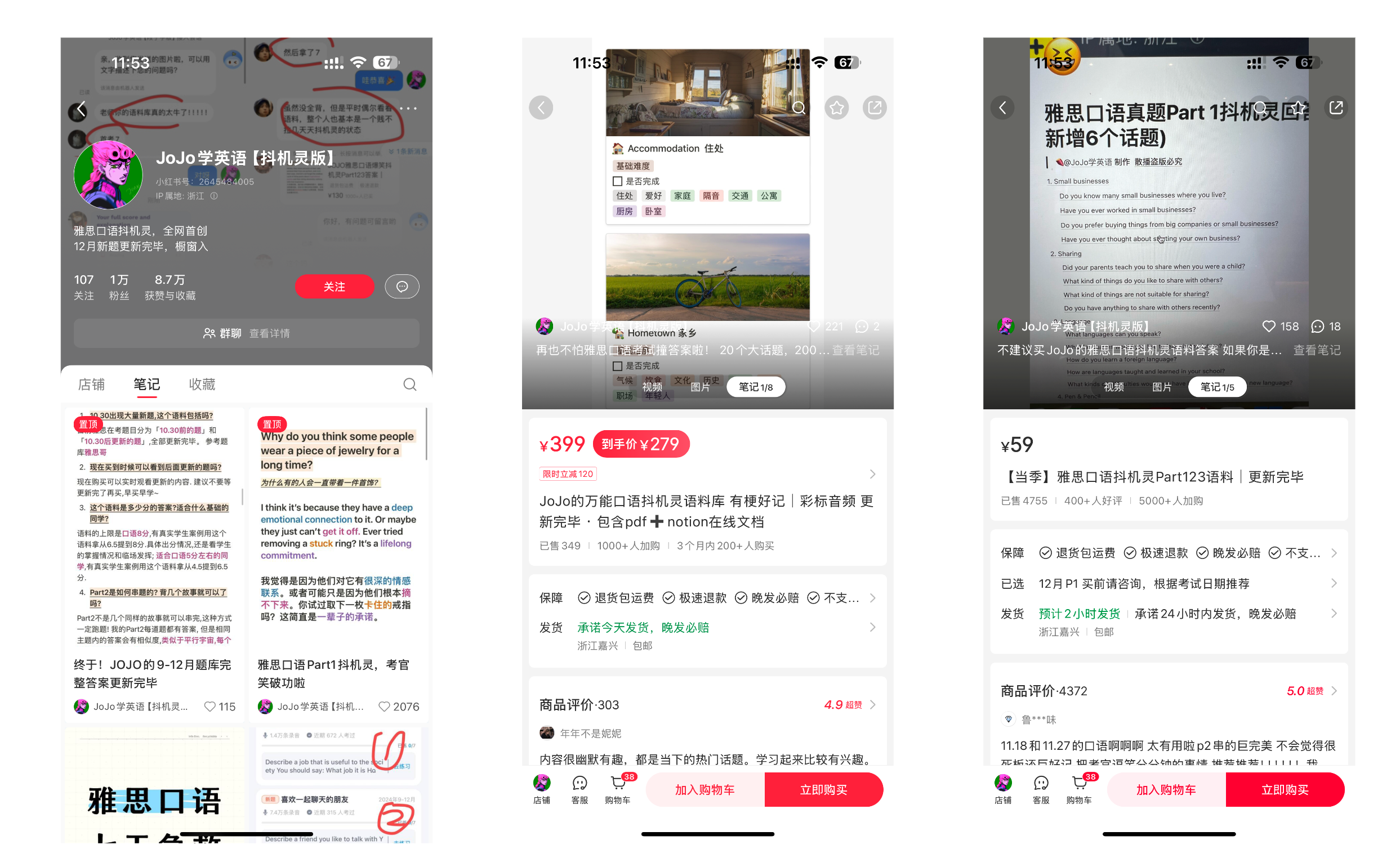 雅思口语抖机灵Part123语料:59元 × 4755份 = 28万
