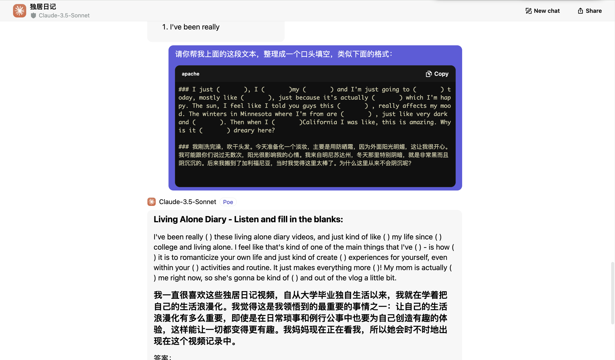 再把AI给到的口头填空的内容,直接放到第3部分就可以了: