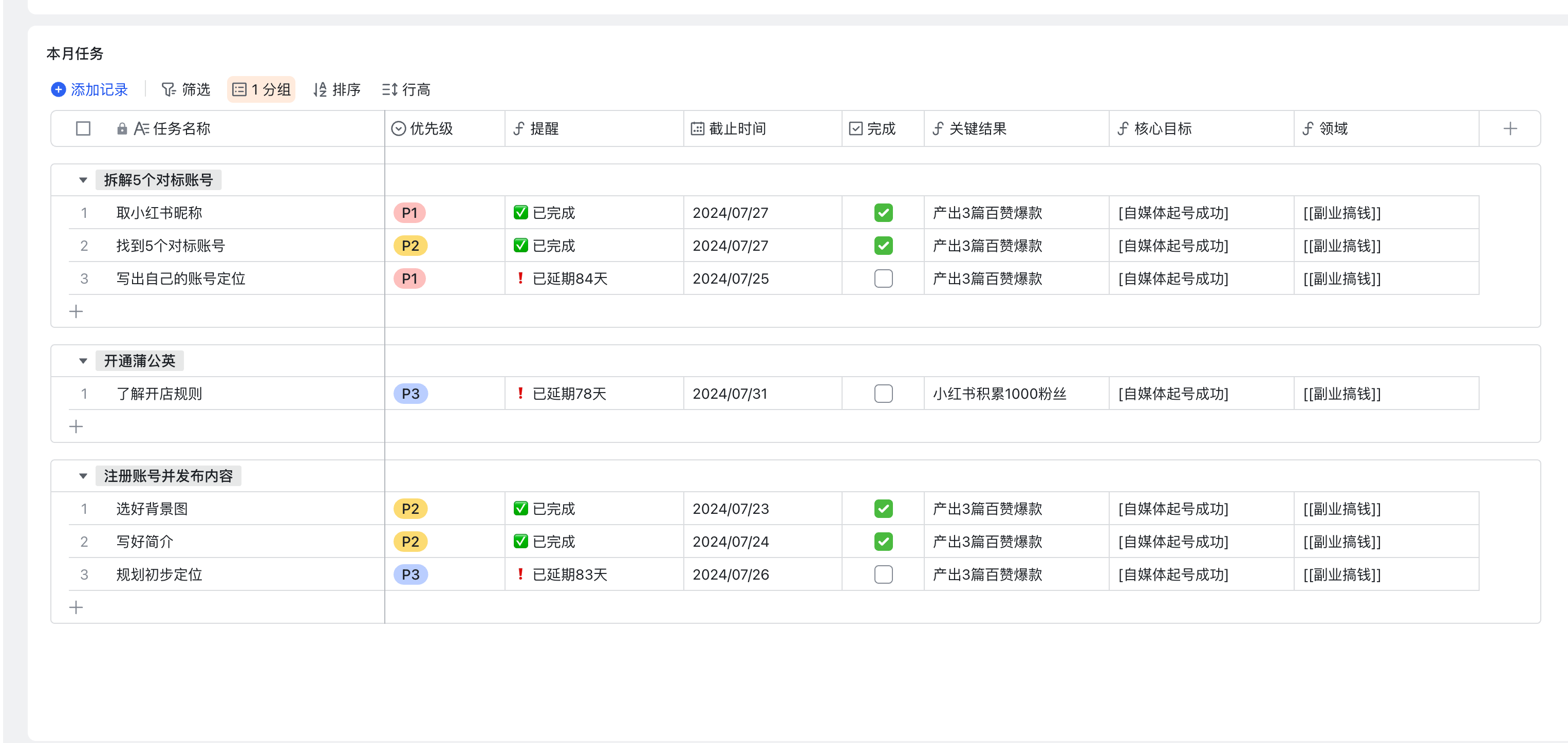模板中需要填充一定的内容素材,以便用户更直观地了解模板的使用方法和效果。我们可以利用AI工具生成示例内容,如示例任务、笔记等,提升模板的专业性和实用性。