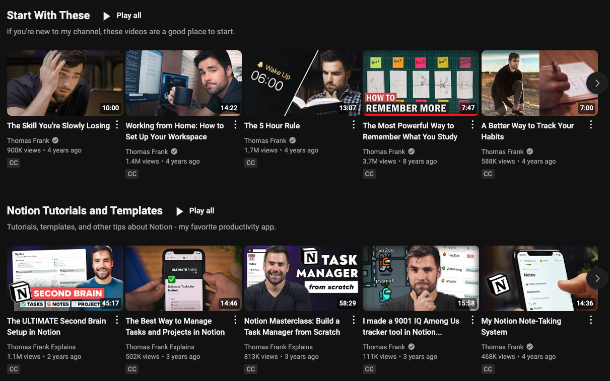 如果你想做Notion或者飞书模板类自媒体,那么我个人认为Thomas Frank的视频是必须参考的。
