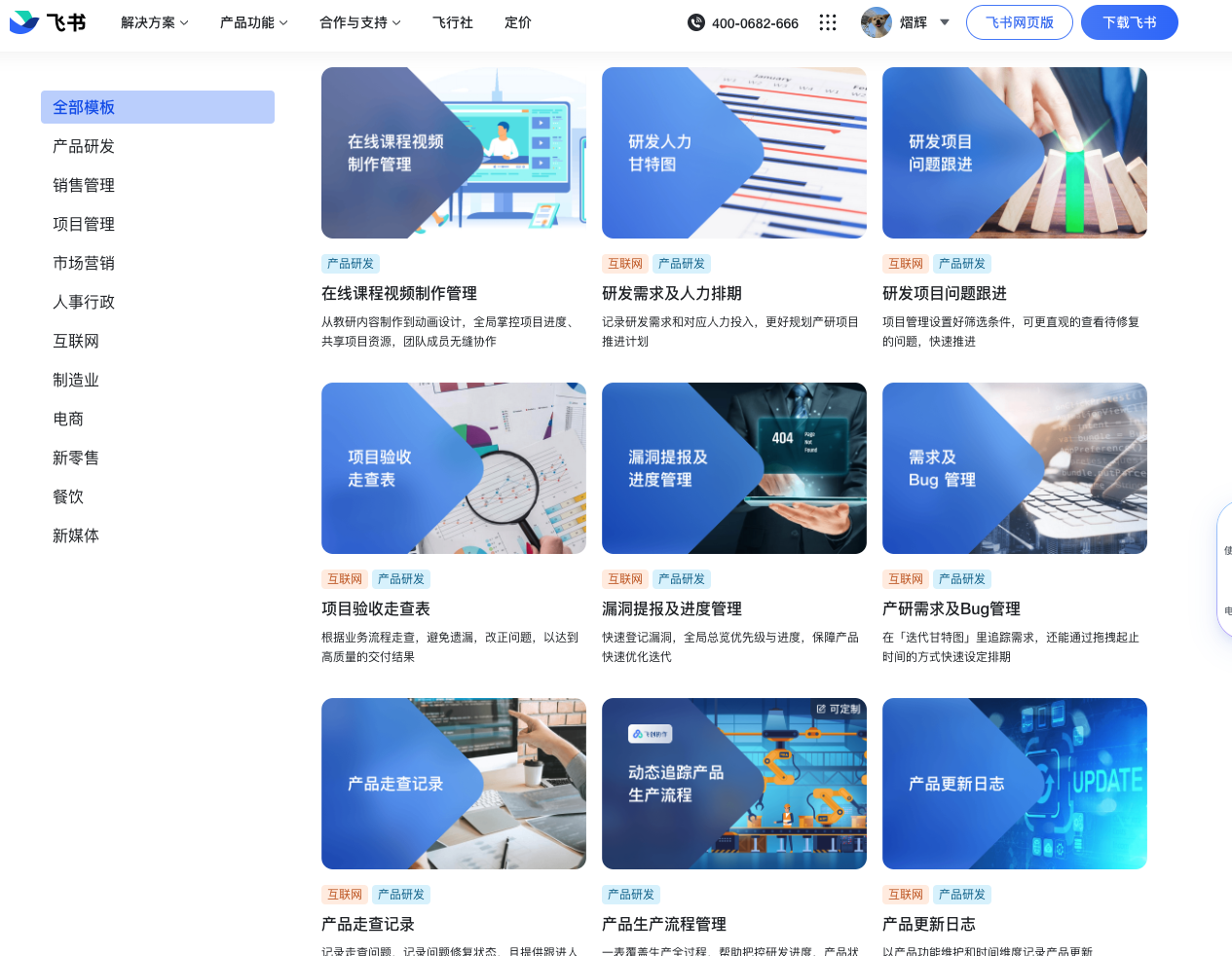 大家可以看看飞书的官方模板中心,虽然提供了大量的模板,但主要面向的是企业用户,偏重于团队合作相关的内容。对于个人用户而言,所需的模板在官方模板库中并没有得到很好的展示和重视。