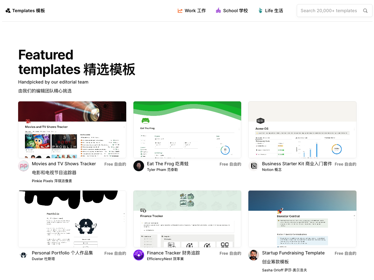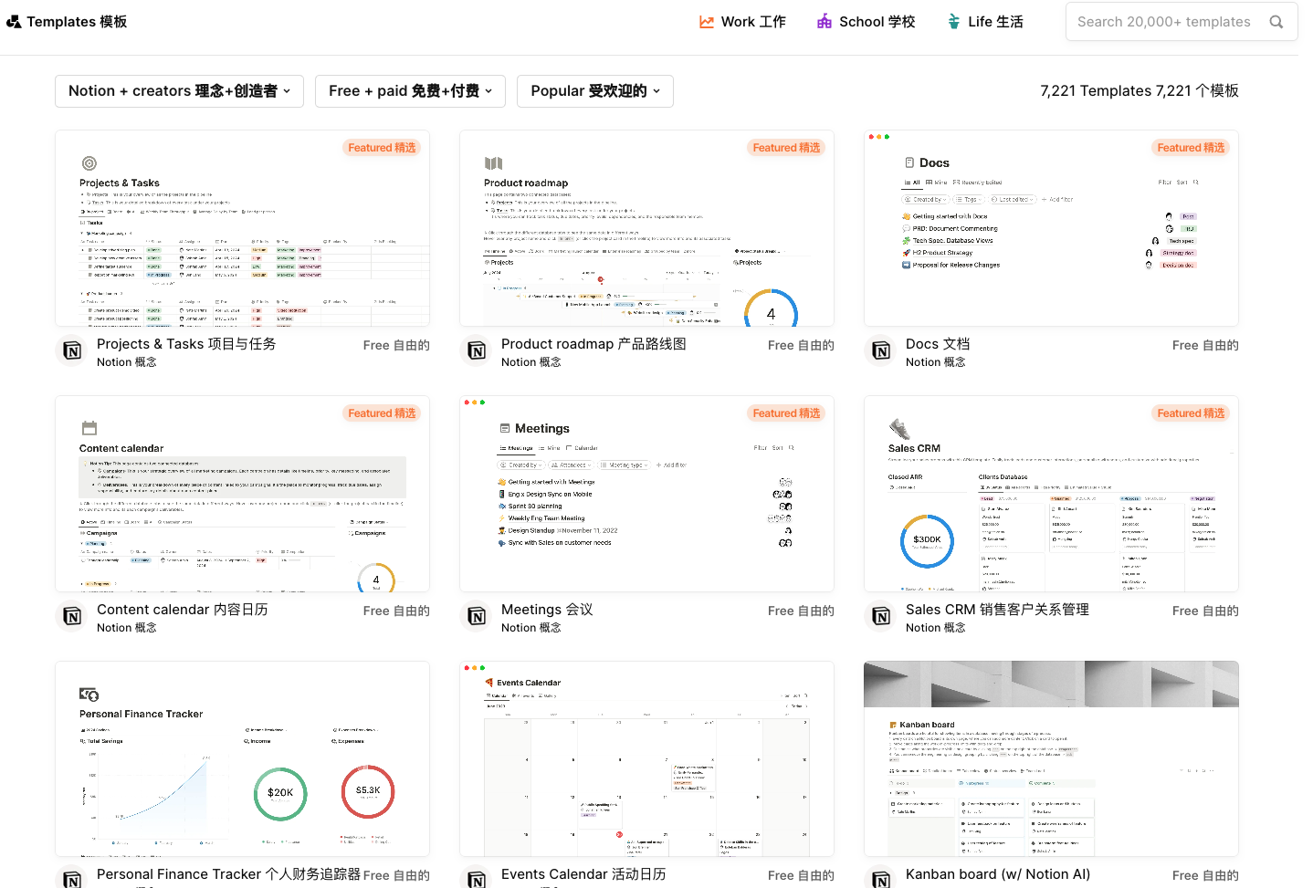 Notion的官方模板库,提供了丰富的Notion模板分类(总共有263个),是最全面的模板分类。